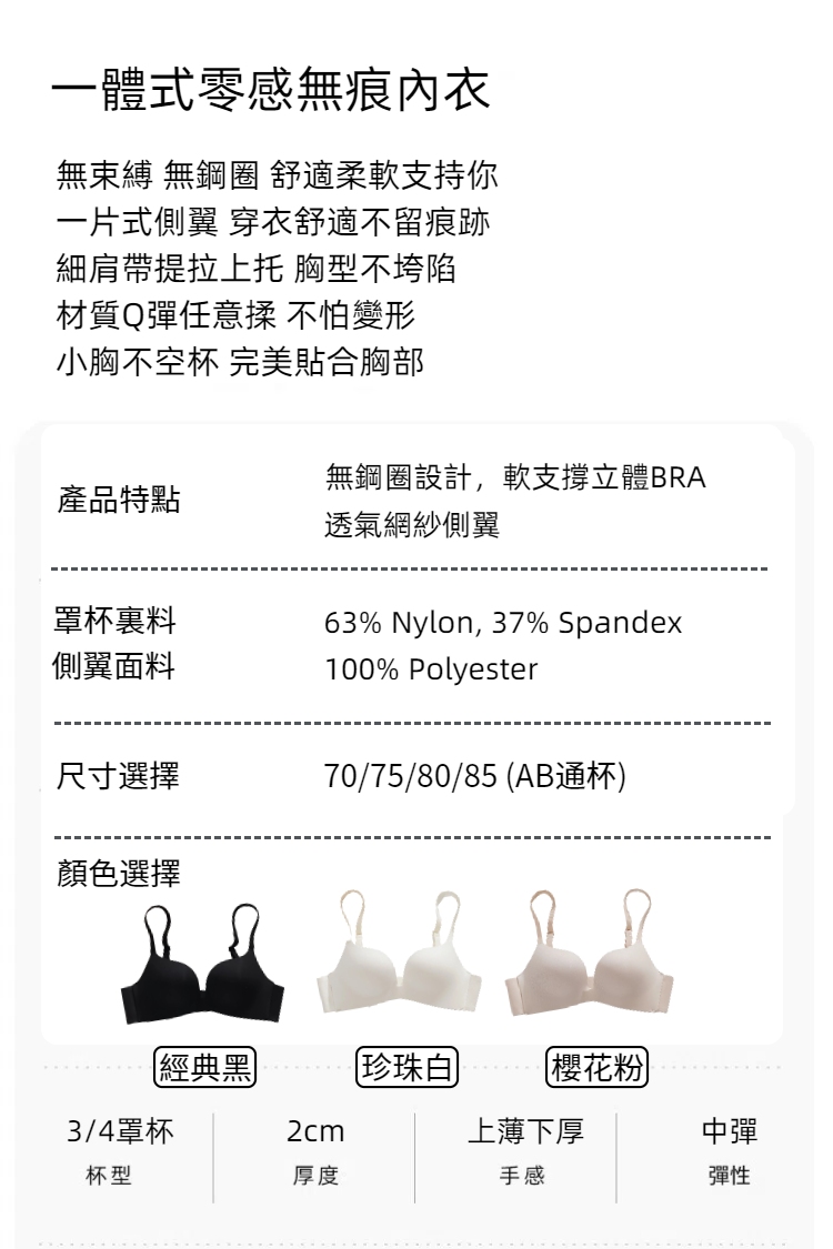 【Miraia米婡雅】一體式零感無痕內衣三色組【經典黑+珍珠白+櫻花粉】(無感內衣、自然聚攏、圓潤有型)