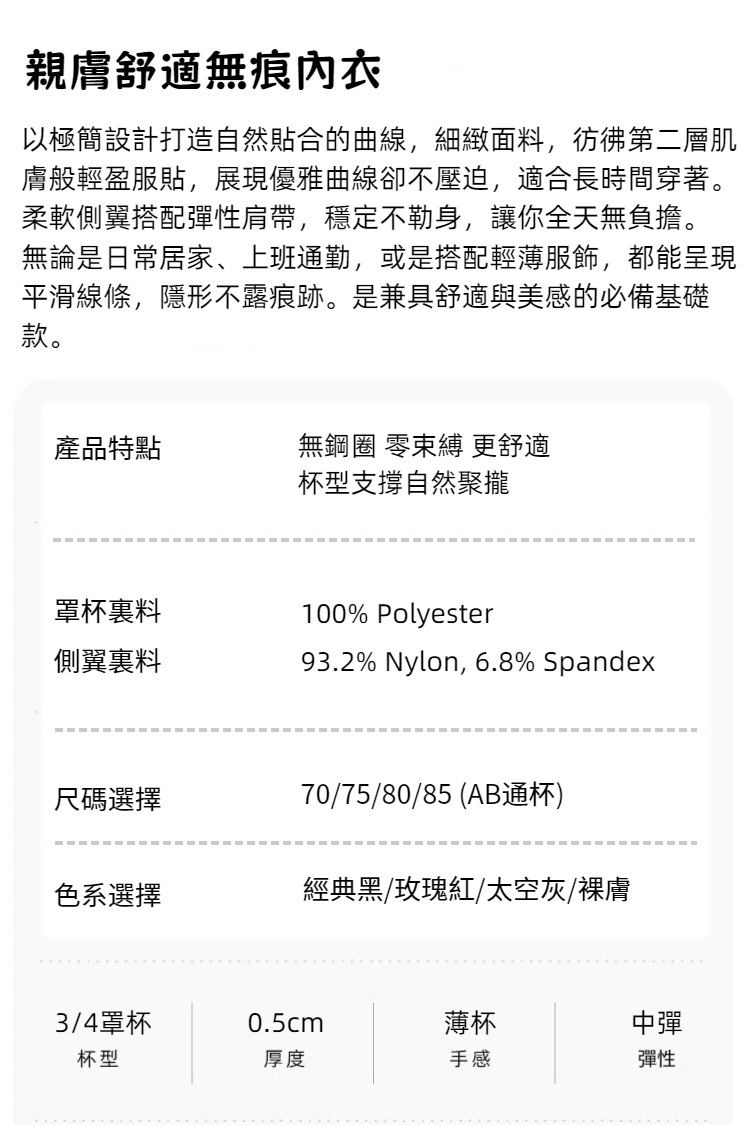 • 貼身無痕設計